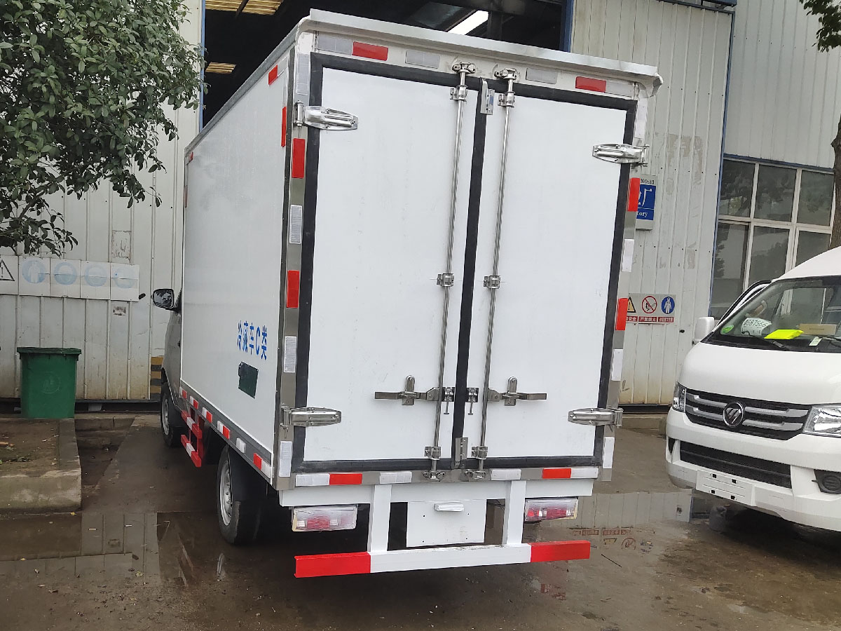 (2)廂板材質(zhì):內(nèi)外壁板選用國內(nèi)優(yōu)質(zhì)玻璃鋼(不吸光、隔熱性好、硬度強(qiáng)、抗氧化);中間保溫層為XPS擠塑聚笨板;廂體厚度8CM。地板采用鋁花紋板,門邊條采用迷宮式橡膠密封條。