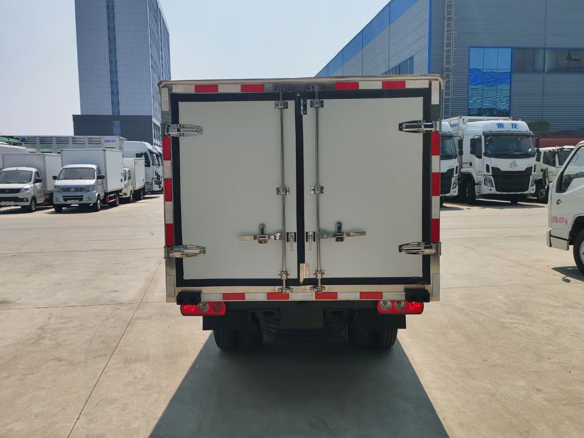 (2)廂板材質:內外壁板選用國內優質玻璃鋼(不吸光、隔熱性好、硬度強、抗氧化);中間保溫層為XPS擠塑聚笨板或聚氨酯;廂體厚度8CM。地板采用鋁花紋板,門邊條采用迷宮式橡膠密封條。