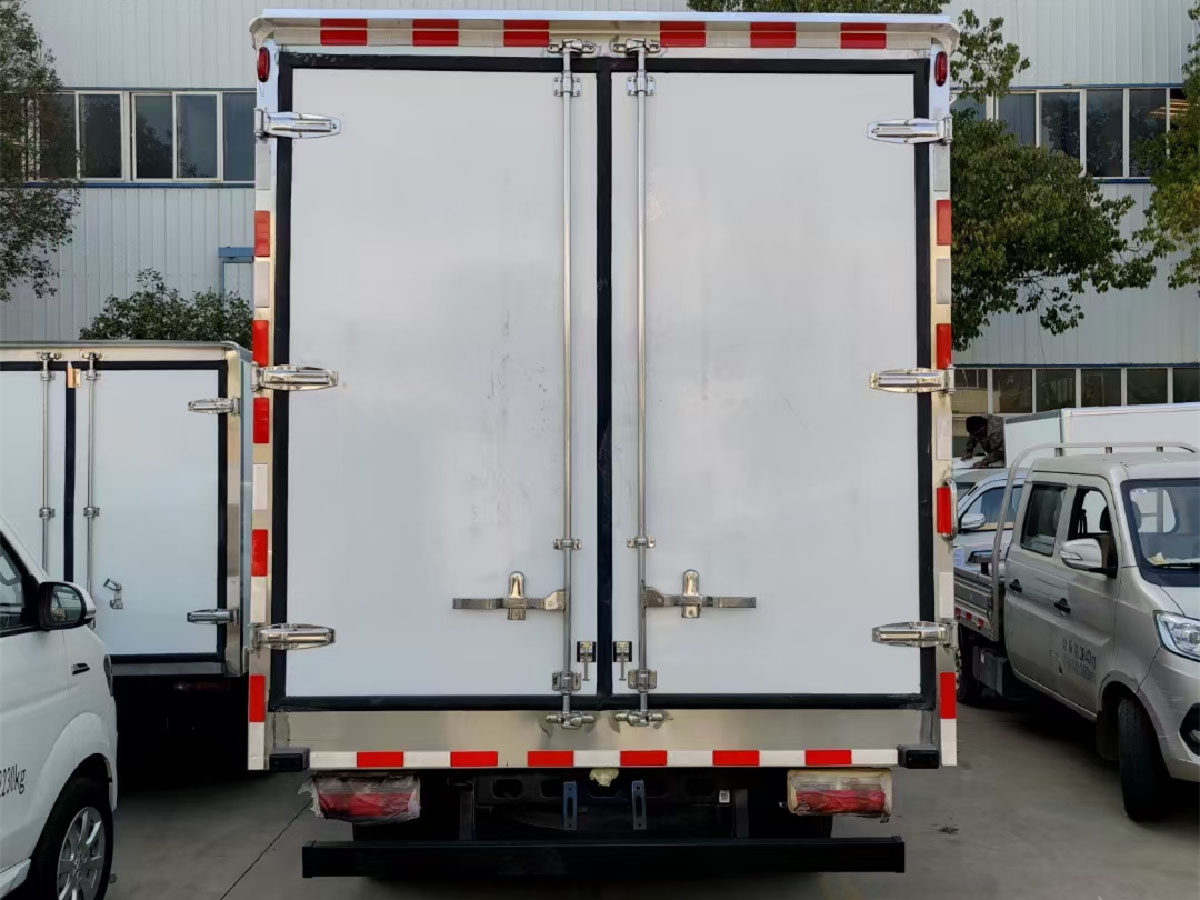 (2)廂板材質:內外壁板選用國內優質玻璃鋼(不吸光、隔熱性好、硬度強、抗氧化);中間保溫層為XPS擠塑聚笨板或聚氨酯;廂體厚度8CM。地板采用鋁花紋板,門邊條采用迷宮式橡膠密封條。