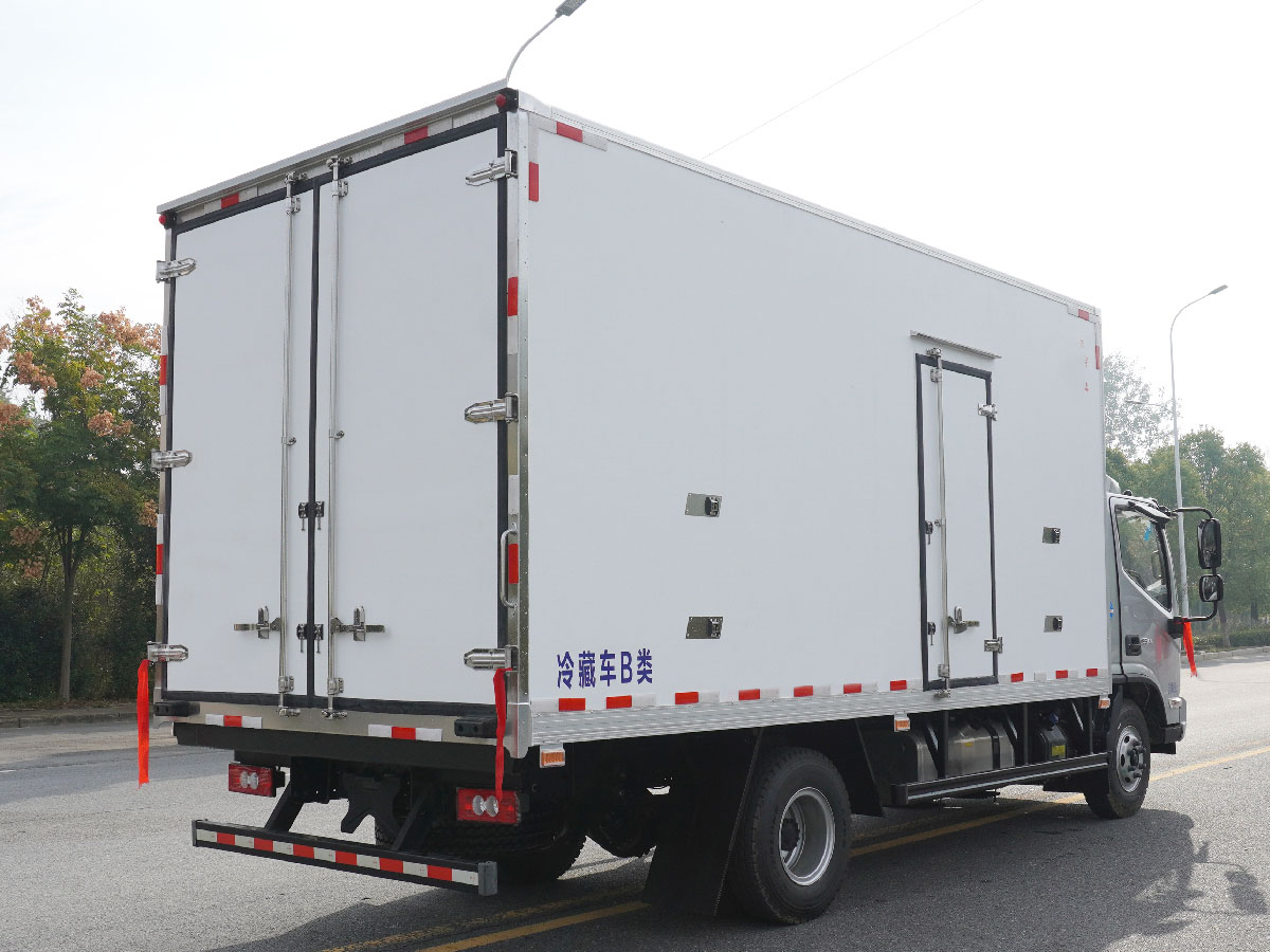 (2)廂板材質(zhì):內(nèi)外壁板選用國內(nèi)優(yōu)質(zhì)玻璃鋼(不吸光、隔熱性好、硬度強、抗氧化);中間保溫層為XPS擠塑聚笨板;廂體厚度8CM。地板采用鋁花紋板,門邊條采用迷宮式橡膠密封條。