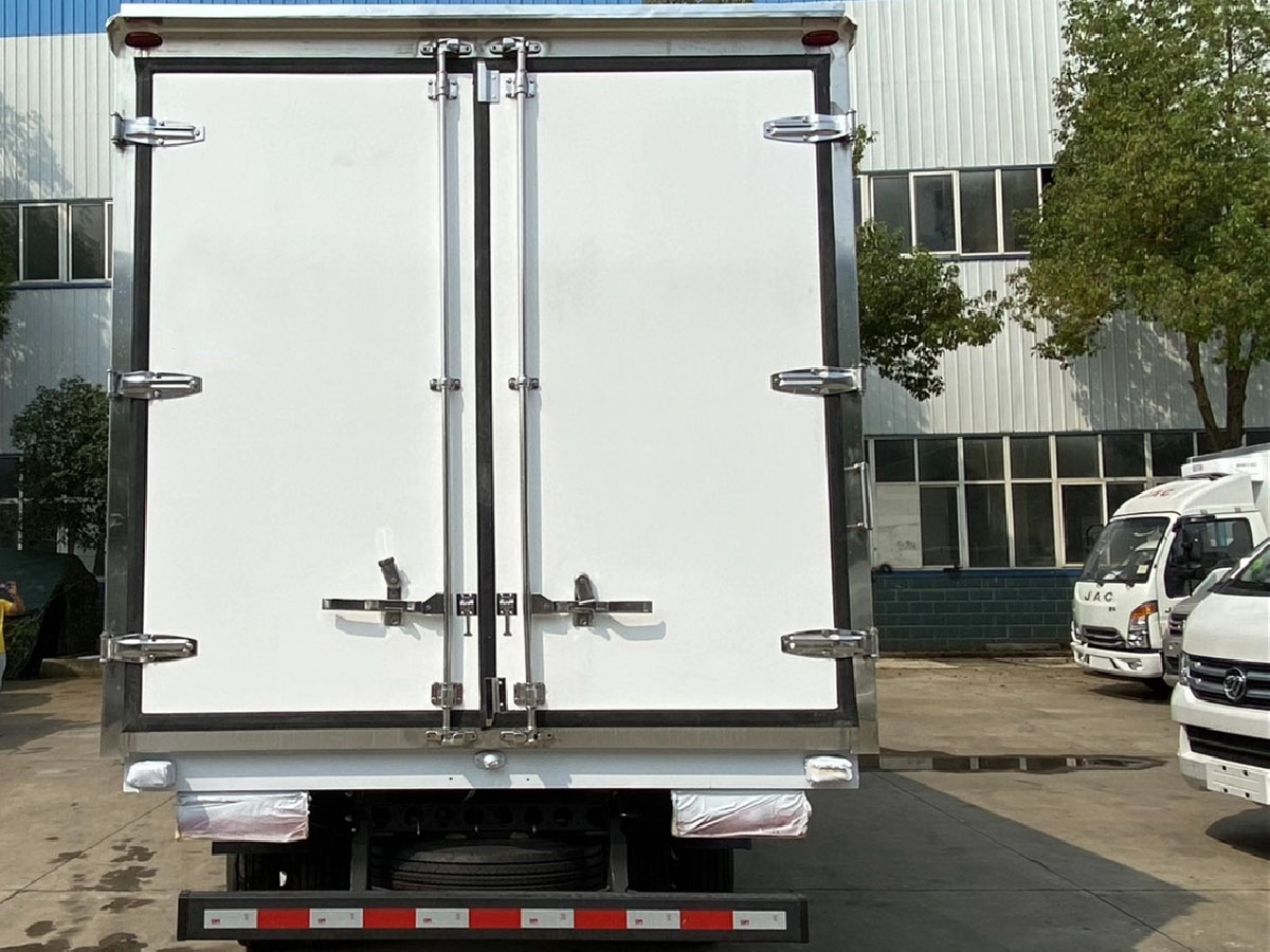 (2)廂板材質(zhì):內(nèi)外壁板選用國(guó)內(nèi)優(yōu)質(zhì)玻璃鋼(不吸光、隔熱性好、硬度強(qiáng)、抗氧化);中間保溫層為XPS擠塑聚笨板或聚氨酯;廂體厚度8CM。地板采用鋁花紋板,門邊條采用迷宮式橡膠密封條。