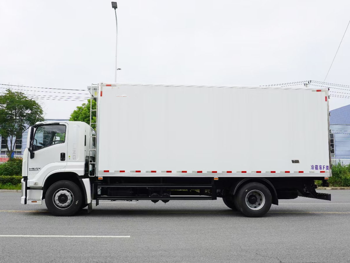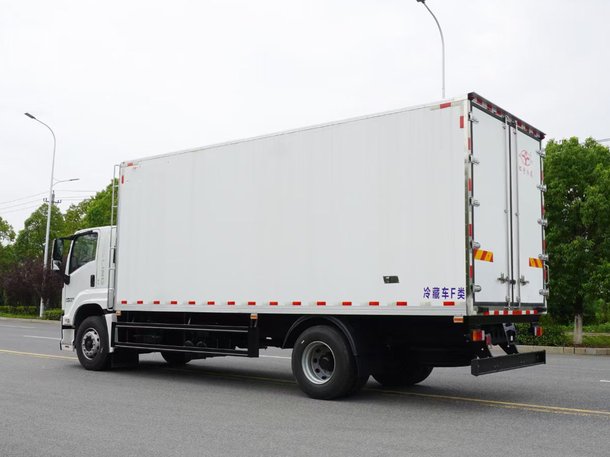 (2)廂板材質:內外壁板選用國內優質玻璃鋼(不吸光、隔熱性好、硬度強、抗氧化);中間保溫層為XPS擠塑聚笨板;廂體厚度8CM。地板采用鋁花紋板,門邊條采用迷宮式橡膠密封條。