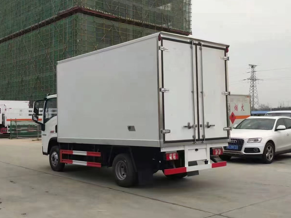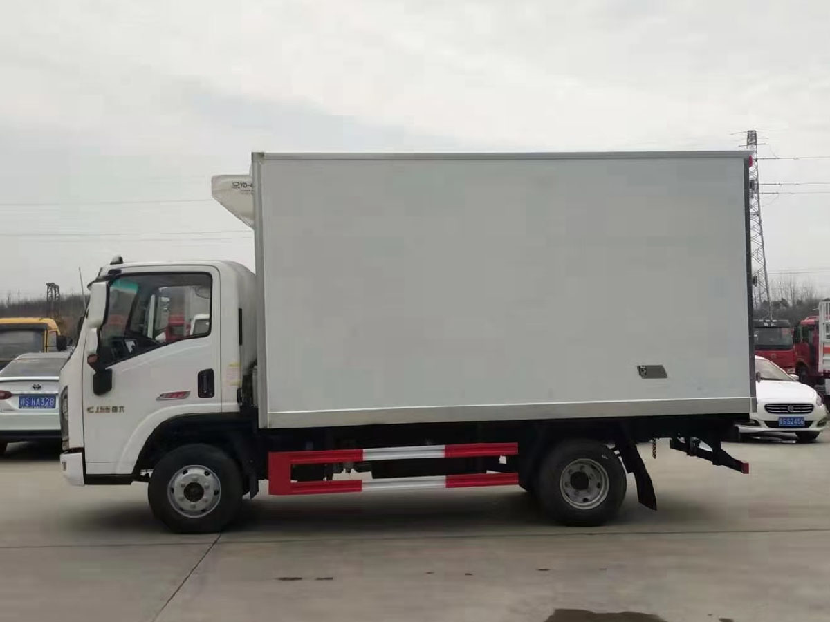 (2)廂板材質:內外壁板選用國內優質玻璃鋼(不吸光、隔熱性好、硬度強、抗氧化);中間保溫層為XPS擠塑聚笨板或聚氨酯;廂體厚度8CM。地板采用鋁花紋板,門邊條采用迷宮式橡膠密封條。