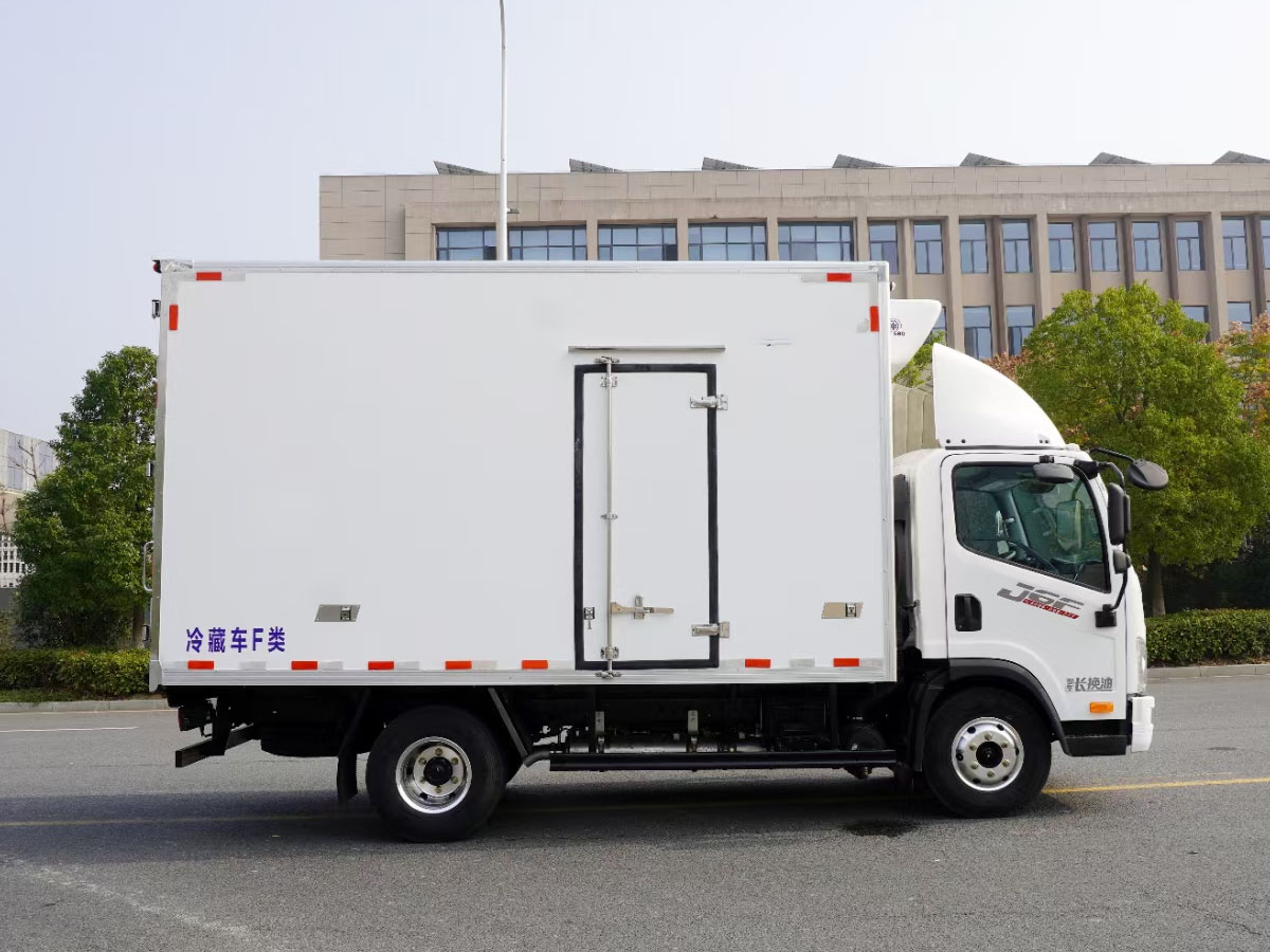 (2)廂板材質:內外壁板選用國內優質玻璃鋼(不吸光、隔熱性好、硬度強、抗氧化);中間保溫層為XPS擠塑聚笨板或聚氨酯;廂體厚度8CM。地板采用鋁花紋板,門邊條采用迷宮式橡膠密封條。