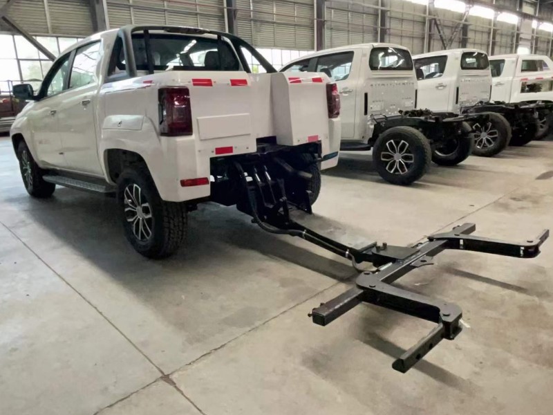 • 放下被拖車輛時,請降下托臀至后車完全落地后,再將抱胎放開收回,否則易導致油缸彎曲損壞! 最后將第3步中裝卸的螺母還原,再將長臂、托臂依次升起歸位,按下紅色按鈕關閉電源,皮卡清障車車即可離開。要想長時間高速拖行車輛,應選用高速拖行小跑車。(可單次行駛上百公里,請按國家有關規定安全時速行駛)。