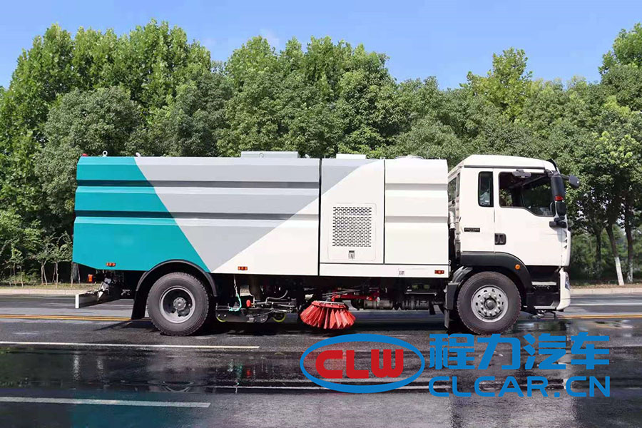 該車是采用重汽豪沃底盤改裝而成,集掃路車、灑水車和高壓清洗車功能于一體,具備路面清掃、路面洗刷、高壓清洗、低壓沖洗、路緣石洗刷、垃圾收集、污水回收、噴霧降塵和道路隔離墻清洗、小廣告清洗等多種作業功能。具有先進的智能化一鍵控制技術,全部作業均在駕駛室內完成,作業時,只需選定作業模式后,各作業機構的啟動與關停由程序自動控制。有“全洗掃”、“左洗掃”、“右洗掃”、“全掃”、“左掃”和“右掃”、“全洗”、“左洗”和“右洗”9種作業模式可供選擇。